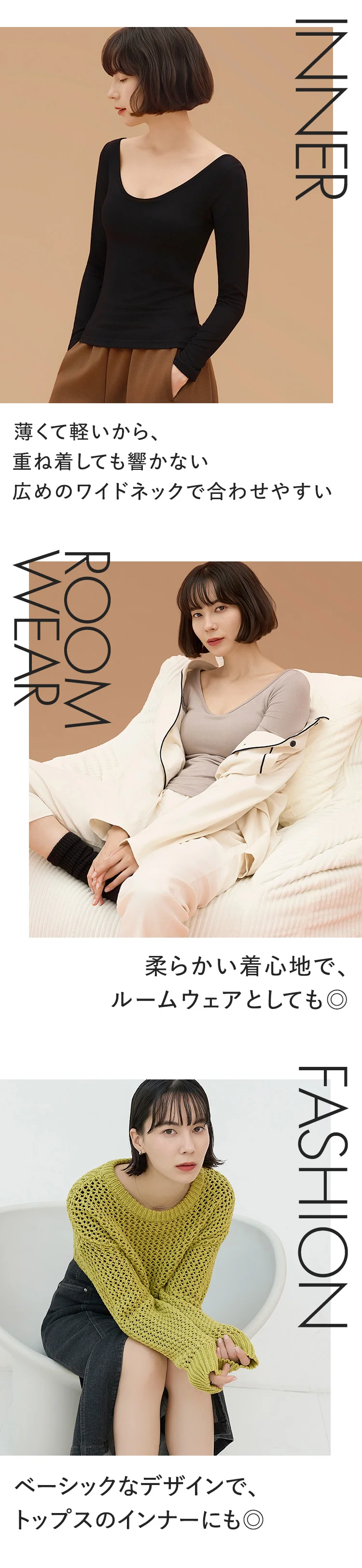 カラー 【ブラ イン ヒート インナー ワイドネック ロング】