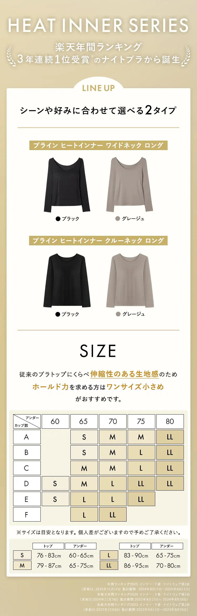 商品名 ブラ イン ヒート インナー ワイドネック ロング / クルーネック ロング
