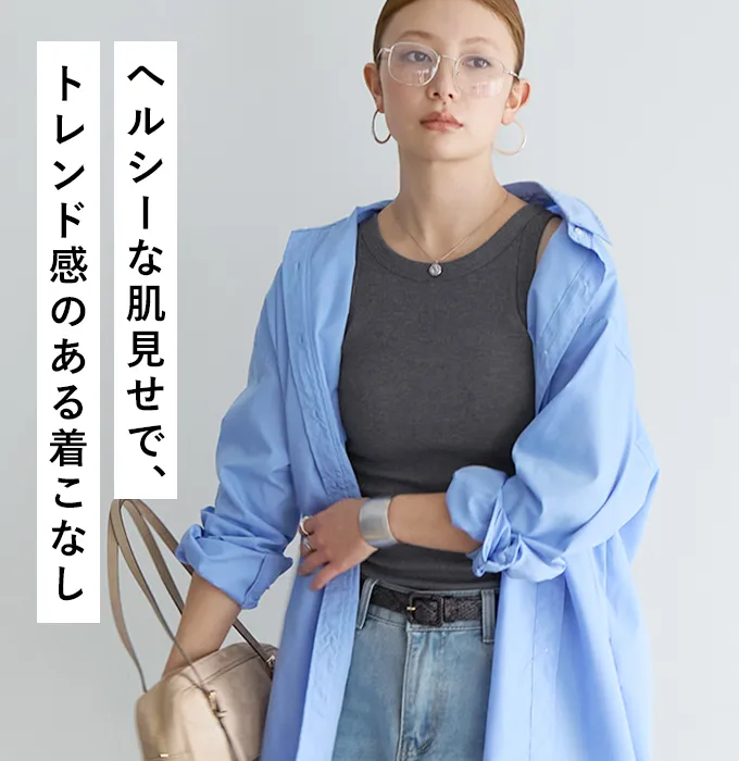 1枚での着用はもちろん、シアーシャツやカーディガンからチラッと覗かせるだけでも抜け感のある着こなしに。